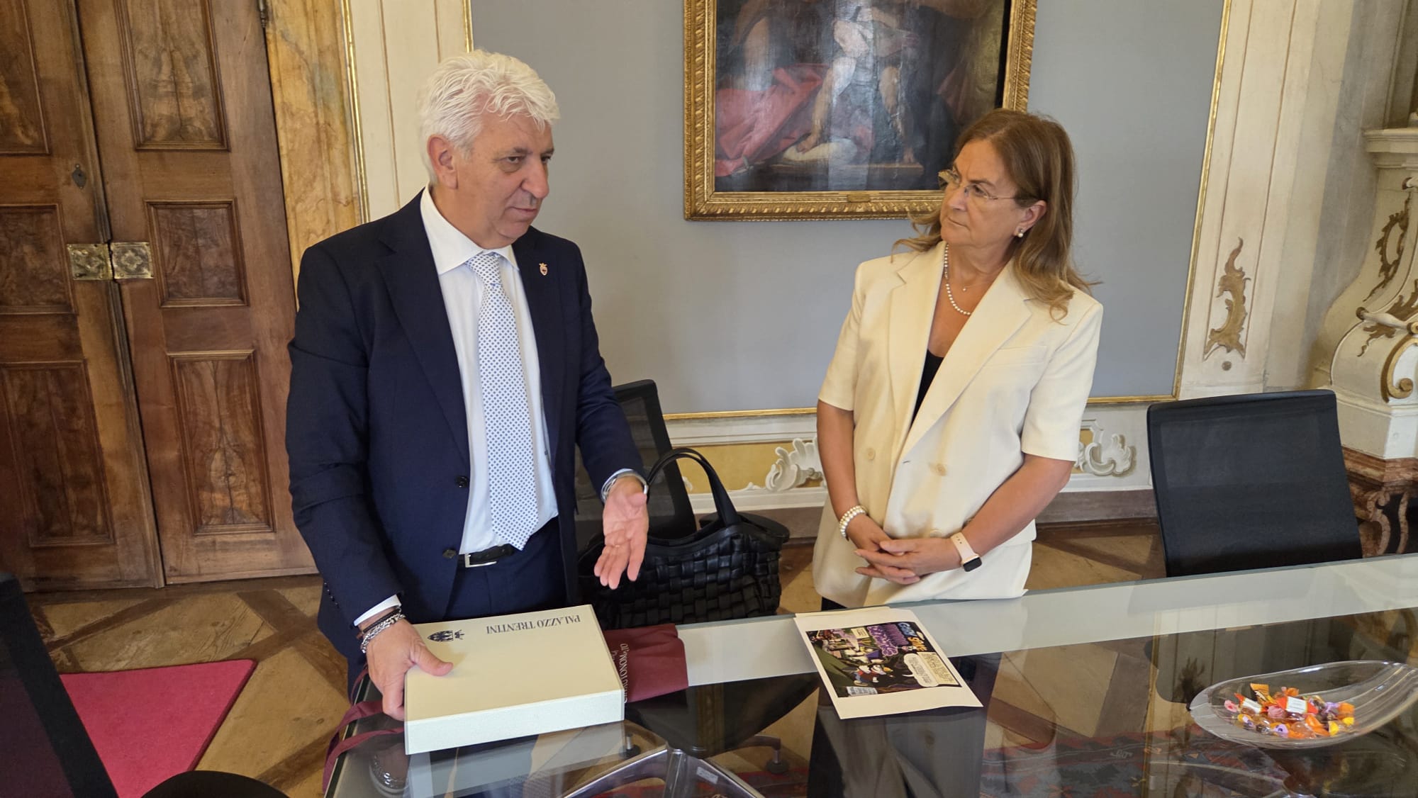 Isabella Fusiello, nuovo commissario del Governo per il Trentino, è stata in visita stamane dal presidente del Consiglio provinciale di Trento, Claudio Soini. Prima donna a rappresentare lo Stato nella Provincia Autonoma, Fusiello a palazzo Trentini ha spiegato la sua forte motivazione a svolgere un lavoro importante per favorire una serena e ordinata vita della comunità trentina. La disponibilità a collaborare è stata manifestata da entrambe le autorità, che condividono il bisogno di mantenere alta l'attenzione su tutti i fenomeni di criminalità, con l'obiettivo di preservare l'ottima qualità di vita che contraddistingue le nostre terre alte. Si è parlato delle prossime Olimpiadi invernali 2026, come evento particolarmente complesso da gestire, anche per le forze dell'ordine. E si è parlato tra l'altro di Cpr e di come il Trentino potrà e dovrà contribuire alla prevenzione dei reati e al mantenimento dell'ordine pubblico.